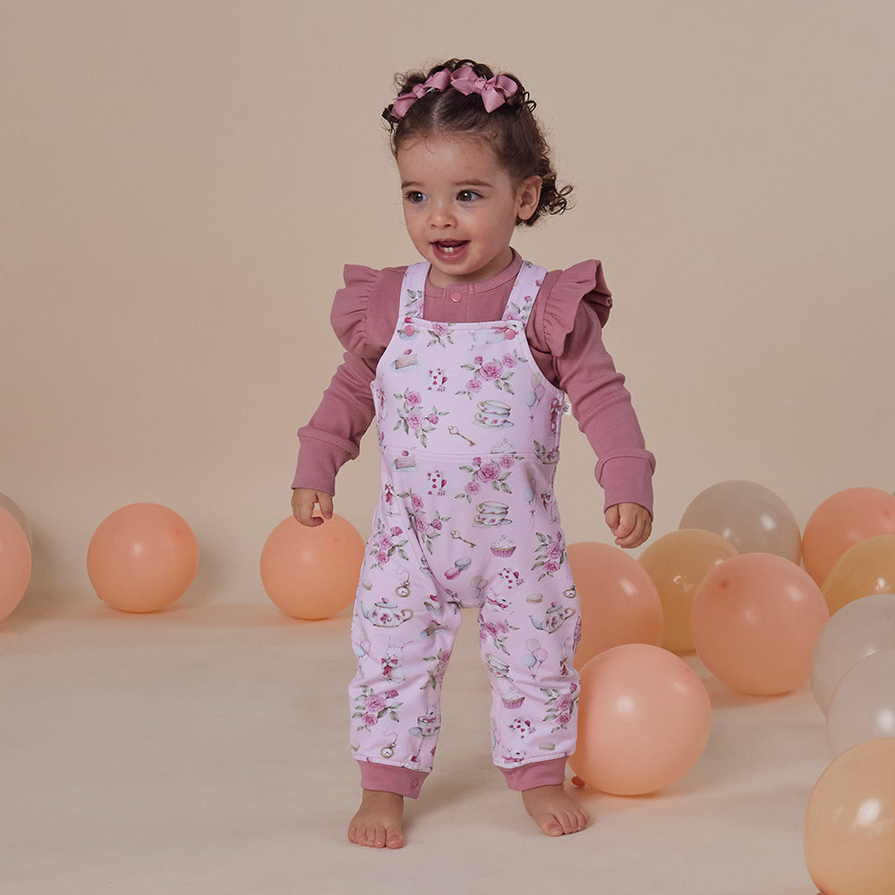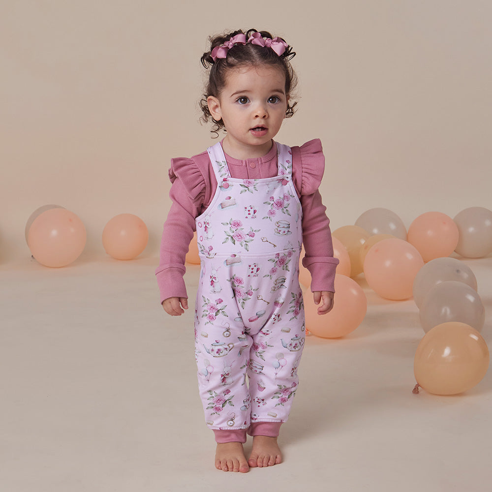Our Snuggle Overalls are stretchy, comfortable, and available in exclusive Snuggle Hunny prints with rib cuffs at the ankle. A slightly loose fit allows them to be paired with a top or bodysuit - the lining and ankle cuff matches beautifully with our rib bodysuits.
