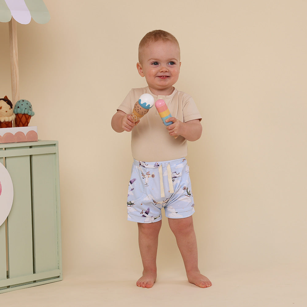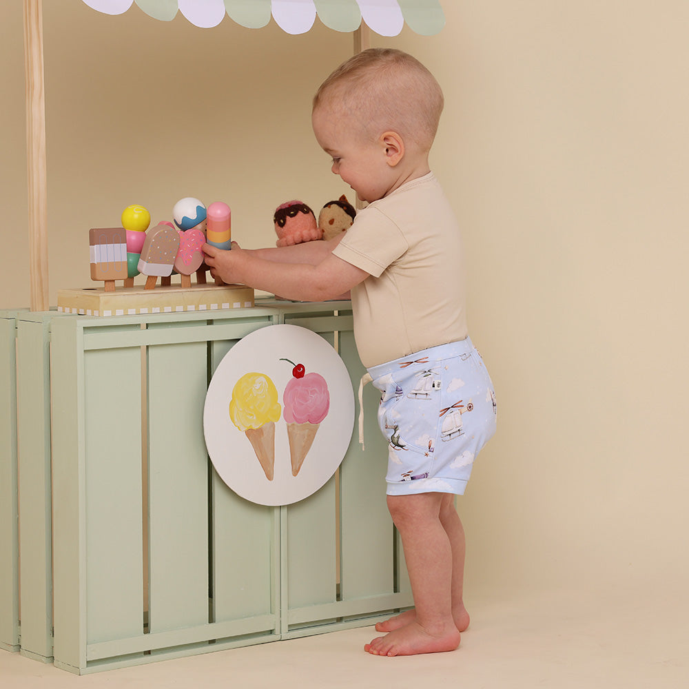 Snuggle Hunny organic Taking Flight shorts are made for babies and toddlers. They are practical whilst being very stylish and match beautifully with our fitted bodysuits and T-Shirts.